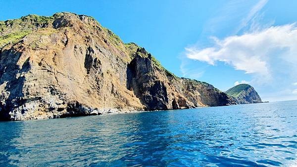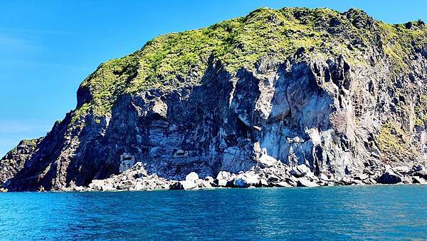 導遊會繞島一圈, 也順便介紹龜山島的特色. 我門從烏龜尾吧開始繞行, 從屁股看, 不像一隻海龜, 而像極了一隻肥老鼠, 接著一條長長的尾吧. 這尾巴可有一公里長呢.