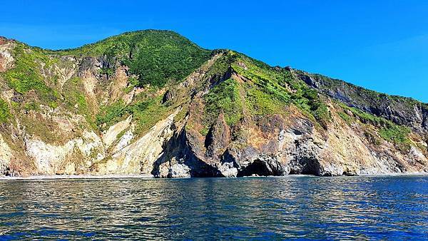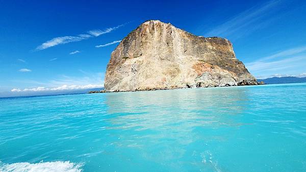 繞島的重頭戲來了, 龜首前的牛奶海出現了. 特殊的海底活火山, 造就出全世界唯一會吐奶的海龜. 硫磺酸酸的刺鼻味, 可以想像這一定是一個好溫泉.