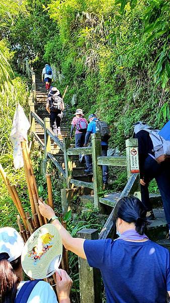每一百階, 都會有標示, 讓登山者不會太寂寞, 途中只有兩個涼亭, 走到一半沒涼亭快掛的時候, 只能坐在階梯上休息. 登高到1706階時, 也就是攻頂到401高地.