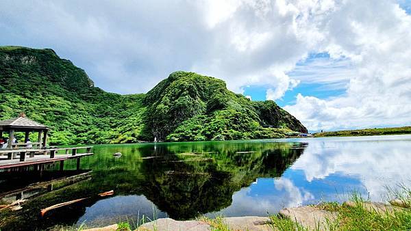 在山下有遊客中心, 不小心在山上喝完水, 可以在這補充水份. 等等休息後, 繼續走龜尾湖. 龜尾湖是大部分遊客登島一定會走的路線. 導遊會一一介紹景點歷史. 最特別的是那冷泉區, 水質超清澈, 其餘的就到處走走看看.